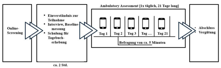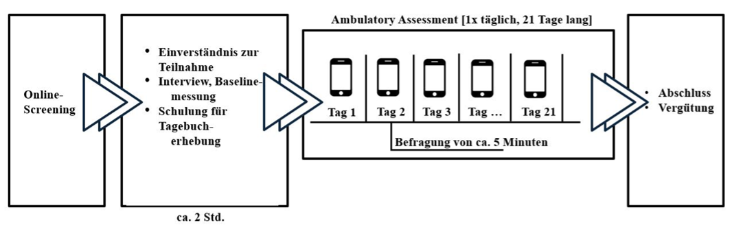 Im Rahmen eines Forschungsprojekts wird aktuell eine Tagebuchstudie durchgeführt bei der jungen Erwachsenen über drei Wochen täglich Fragen zu ihrer Stimmung, ihren Sorgen und der körperlichen Aktivität per Smartphone beantworten. Hierfür suchen wir motivierte Teilnehmende! Für eine vollständige Teilnahme bieten wir bis zu 45€ Vergütung.